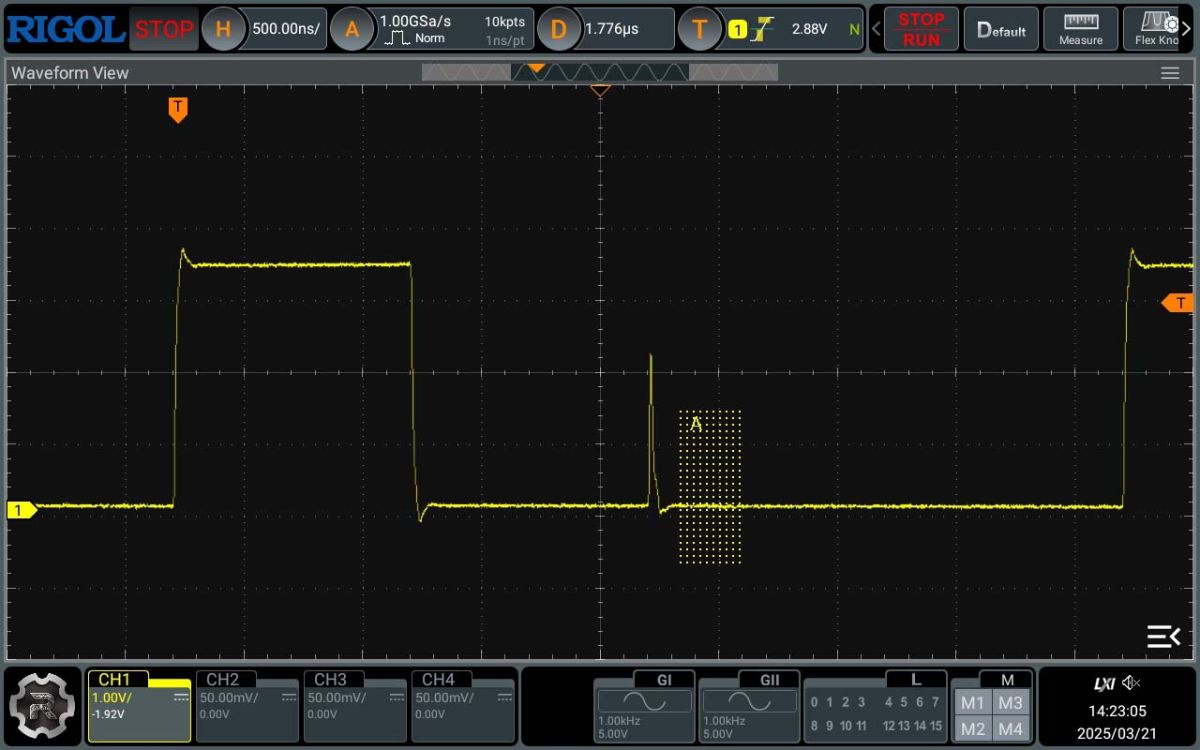 - Коэффициент развертки: 1 нс/дел ~ 500 с/дел