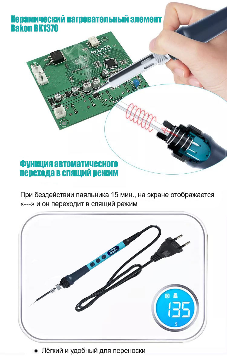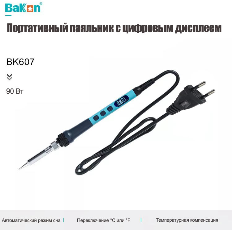 Этот товар может иметь другие альтернативные названия, такие как: Паяльник цифровой BAKON BK607 с регулировкой температуры,