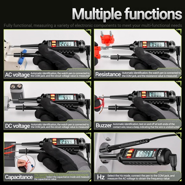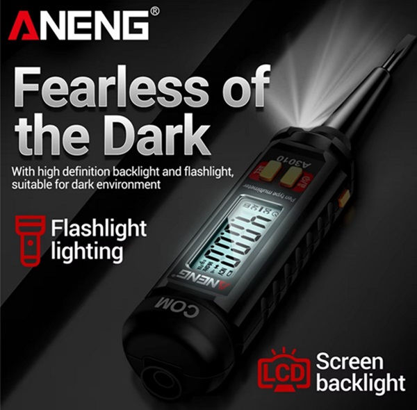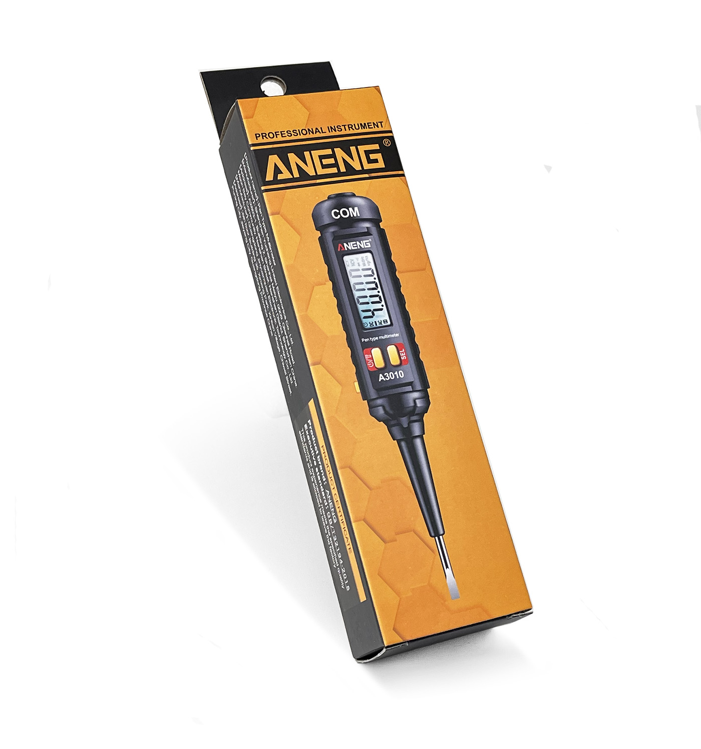 ANENG A3010 цифровой мультиметр в виде отвертки, с бесконтактным измерителем переменного и постоянного напряжения (NCV), измерением сопротивления, емкости, частоты с прозвонкой цепи. ЖК-дисплей с подсветкой, True RMS 4000 отсчетов, фонарик, автоматическое выключение, сохранение данных.